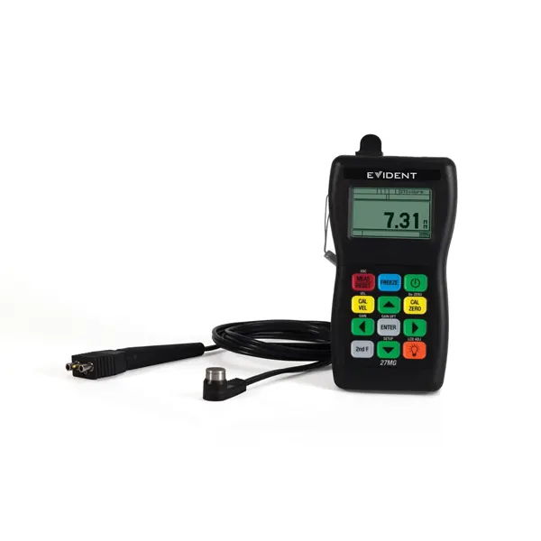 Olympus 27MG Ultrasonic Thickness Gauge is an affordable ultrasonic thickness gage designed to make accurate measurements from one side on internally corroded or eroded metal pipes, tanks, and other equipment. It weighs only 12 oz. (340 g) and is ergonomically designed for easy one-handed operation.