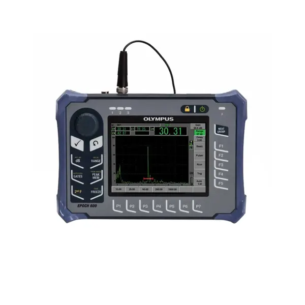 Olympus Epoch 600 Flaw Detector offers you the choice to adjust parameters with a knob or with a navigation area on the keypad. Olympus Epoch 600 Flaw Detector is designed to meet the requirements of EN12668-1 and allows a full range of standard and optional flaw detection features. The rugged, ergonomic design allows use in nearly any inspection environment, while the flexible PerfectSquare pulser and digital filtering capabilities can tackle nearly any application.